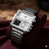 Combines analog and digital time displays for precision and style.